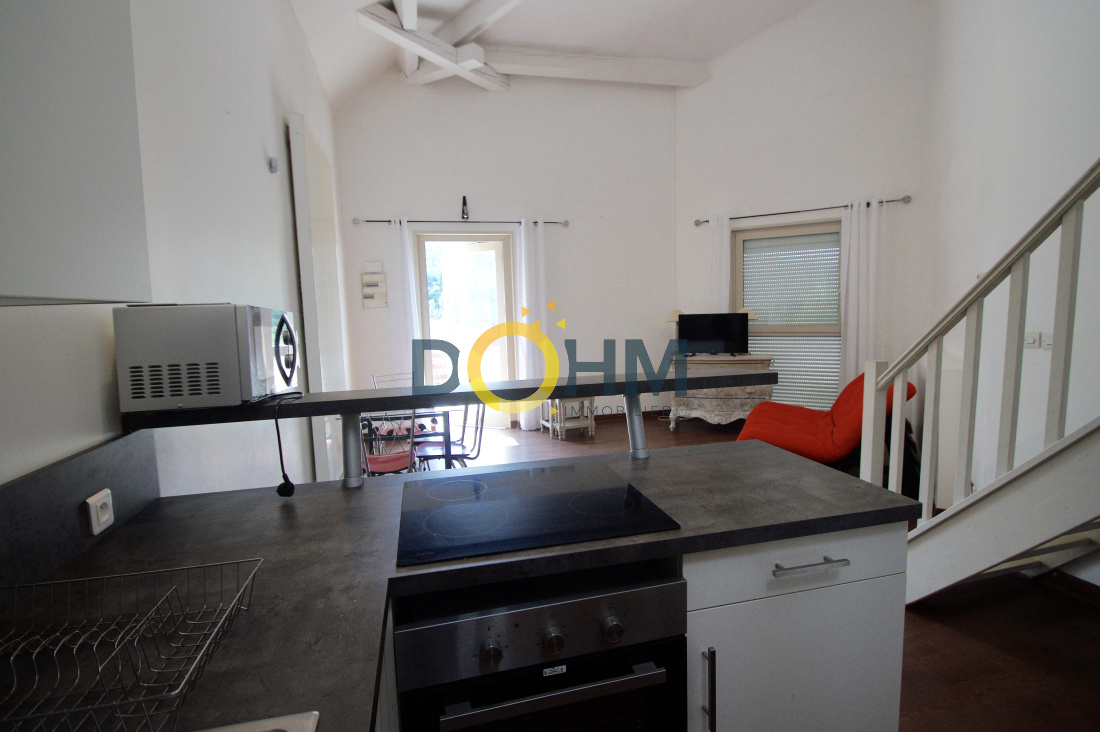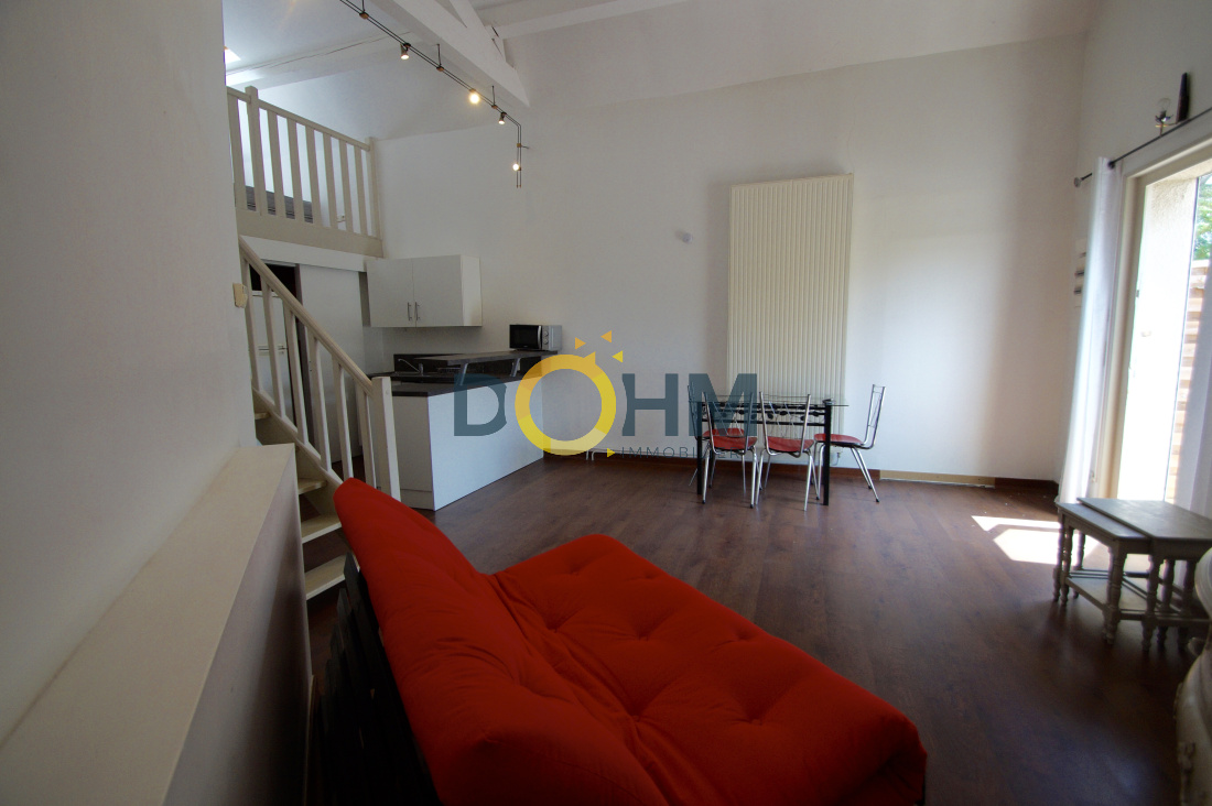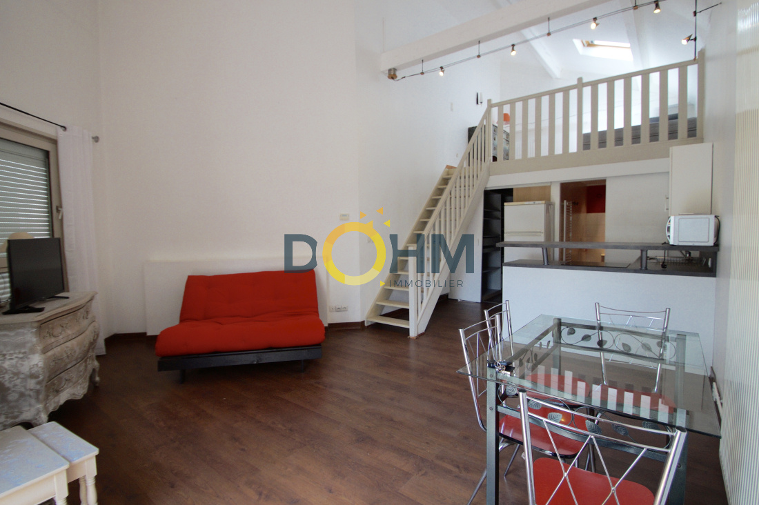 Appartement Duplex de type T1 de 42.40m2 loi carrez à la Fouillouse. Il se compose d'une pièce de vie avec cuisine ouverte, une salle d'eau avec WC, d'un dressing et d'une chambre en mezzanine. Il possède un petit jardin de 20m2 et une terrasse de 10m2. Les huisseries sont en double vitrage. La taxe foncière est de 300euros environ. Les charges sont de 24€ / mois. Les honoraires sont à la charge du vendeur. Pour tous renseignements, merci de contacter Marie CHAPAL : 06.36.41.77.97 ou marie.chapal@dohm.fr
