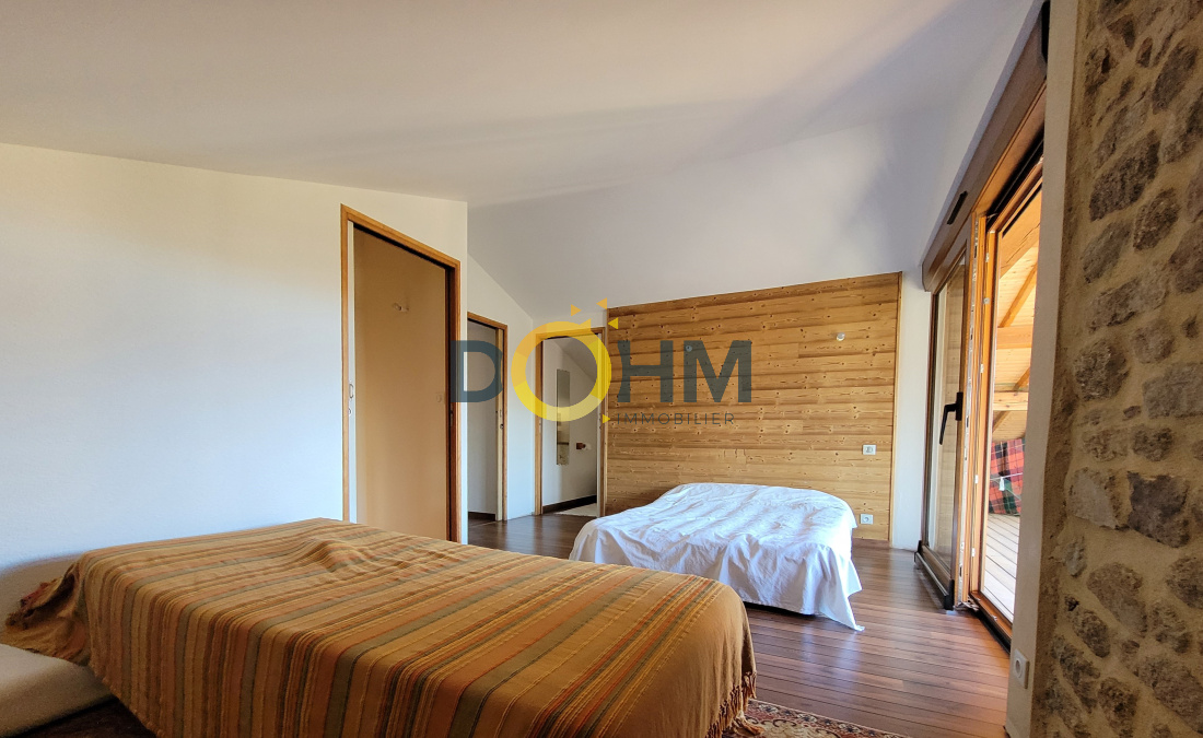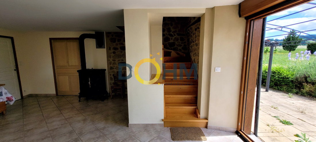 A 15min d' Ambert dans secteur champêtre, ancien atelier en pierre entièrement restauré en deux parties d'habitation modulables dans un hameau paisible. Au rez-de-chaussée, un espace séjour ensoleillé avec une grande baie vitrée coulissante, cuisine/salle à manger, accès direct sur la terrasse exposée plein sud, toilettes. A l'étage, une chambre avec une salle de bains privative, balcon forézien avec vue sur le Col du Béal, deux chambres, une salle d'eau, toilettes. Grange, cave et atelier attenants à la maison. Plancher chauffant, poêle à bois, double vitrage, volets roulants électriques, isolation de qualité, fosse septique aux normes. Ideal pour les amoureux de la nature, les moments de convivialité avec les amis et la famille. Contactez-moi pour une visite DIETZ Alexandrine au 06 88 05 56 43 Agent commercial entrepreneur individuel (RSAC 909 545 717) SAS FF Immobilier conseils 63 – 10 place Saint Jean 63600 Ambert – Gérant : Mr Faure Guillaume Numéro de carte professionnelle CPI 6301 2022 000 000 001 - CCI de Puy de Dôme valable jusqu’au 23/11/2025 Les honoraires sont à la charge de l'acquéreur.
