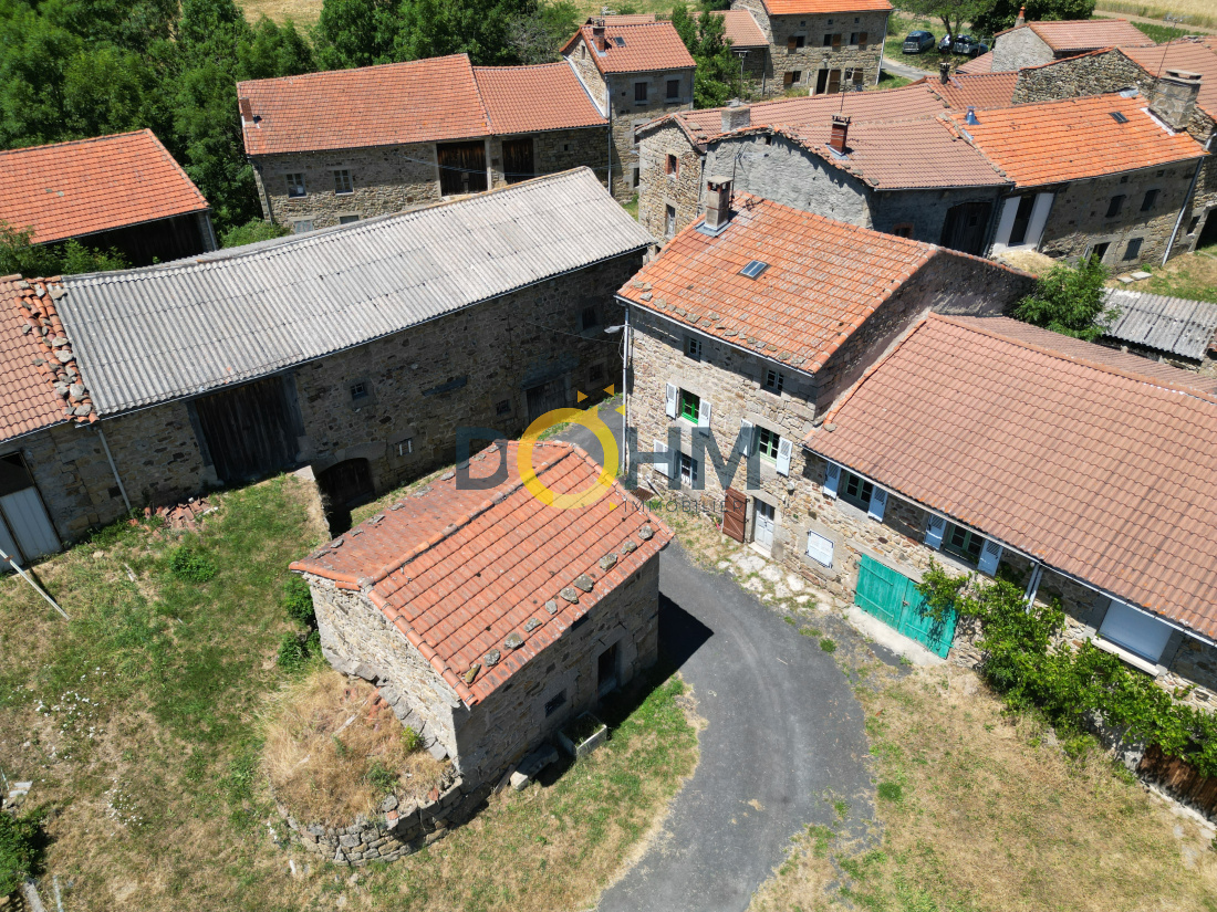 Dans le village de Darne, entre Langeac et Saugues, ensemble immobilier composé d'une maison d'habitation avec garage, une grange, un ancien four et un jardin non attenant. La maison d'habitation comporte au RDC, un séjour, souillarde et une chambre. A l'étage une salle de bain, 2 chambres et deux pièces à distribuer. Au-dessus, le grenier est aménageable. Le bien dispose d'un garage attenant en bon état. La maison est entièrement à restaurer. La toiture du garage est impeccable et la couverture de la maison est à revoir. La grange dispose d'une toiture en fibro-ciment amiante. La structure de l'ancien four est en bon état. L'ensemble contient un terrain non attenant à 50m de la maison à usage de jardin. Contact Romane au o6 42 46 78 68