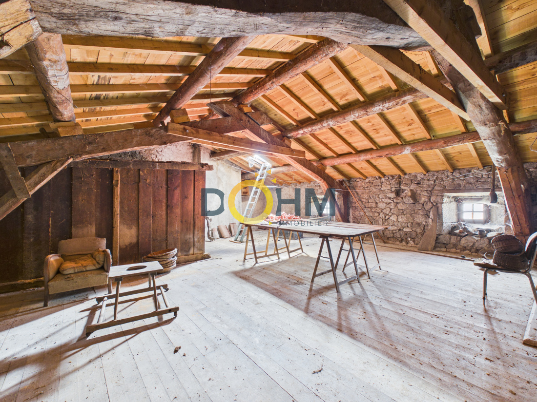 À vendre, à seulement 5 minutes de Saugues, authentique corps de ferme en pierre à rénover, plein de charme et offrant de nombreuses possibilités d’aménagement. La maison principale propose environ 90 m² habitables répartis sur deux niveaux. Elle séduit dès l’entrée par sa chaleureuse pièce de vie avec son cantou en pierre, ses sols en bois et ses poutres apparentes, témoins de son authenticité. Une chambre de plain-pied vient compléter le rez-de-chaussée, ainsi qu’une salle d’eau avec WC. À l’étage, vous découvrirez une grande pièce lumineuse dotée de placards muraux anciens, au cachet préservé, idéale pour créer un espace nuit supplémentaire, un bureau ou une salle de détente selon vos envies. Les combles d’environ 45 m² offrent également une belle surface aménageable supplémentaire. Une cave voûtée vient renforcer le caractère de cette bâtisse. À l’extérieur, le bien dispose de deux cours : une à l’avant de la maison et une seconde à l’arrière. De vastes dépendances attenantes complètent l’ensemble, avec une ancienne étable et une grange au-dessus, offrant de nombreuses possibilités (stockage, atelier, aménagement…). Un bien de caractère qui séduira les amoureux de la pierre et les projets de rénovation. Maison raccordée au tout-à-l’égout du village. Renseignements et visite avec Jérome o663794107