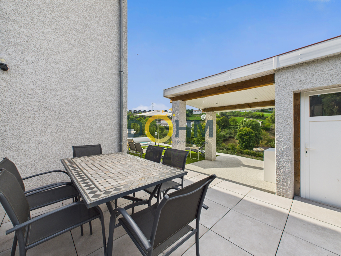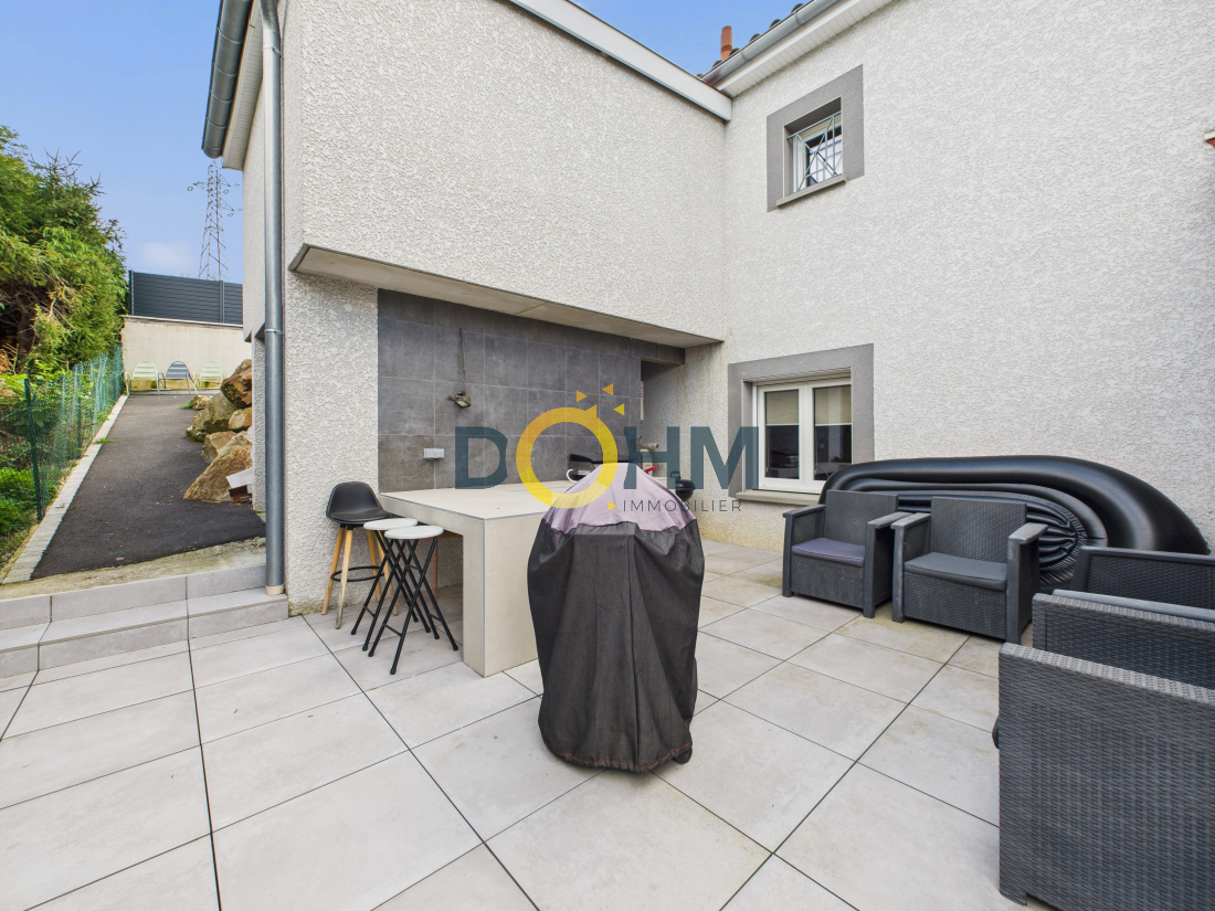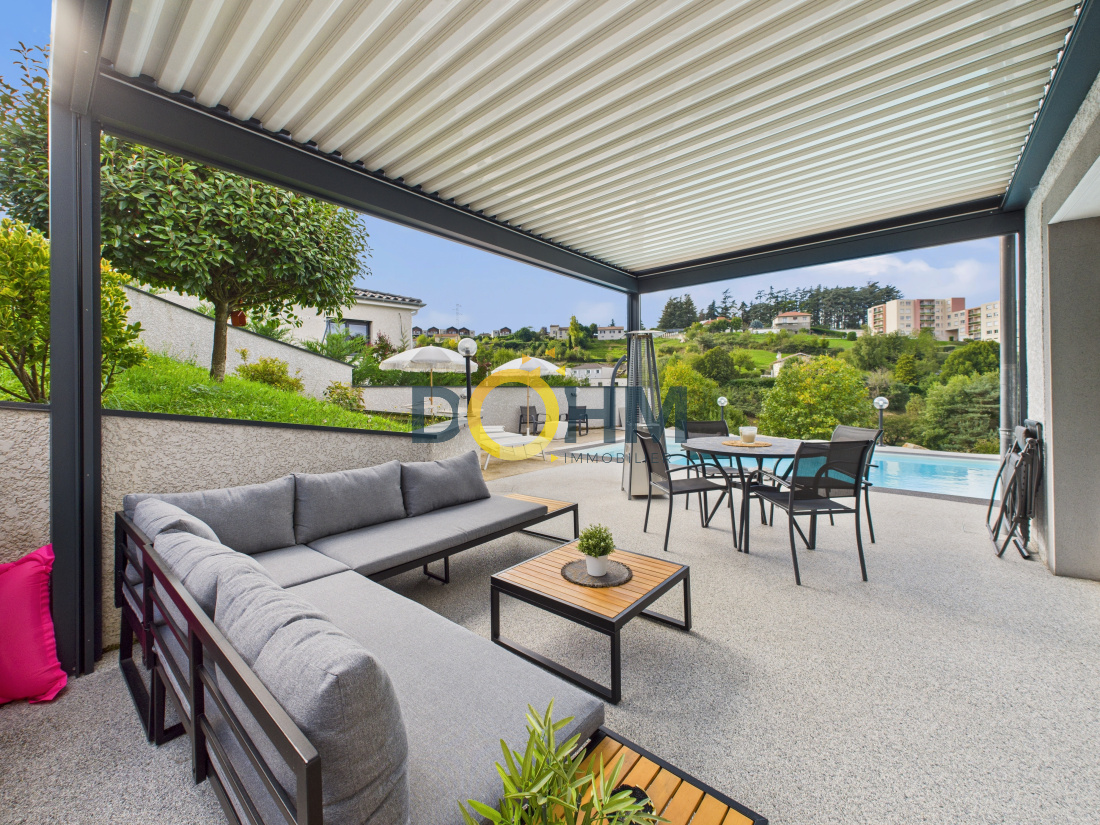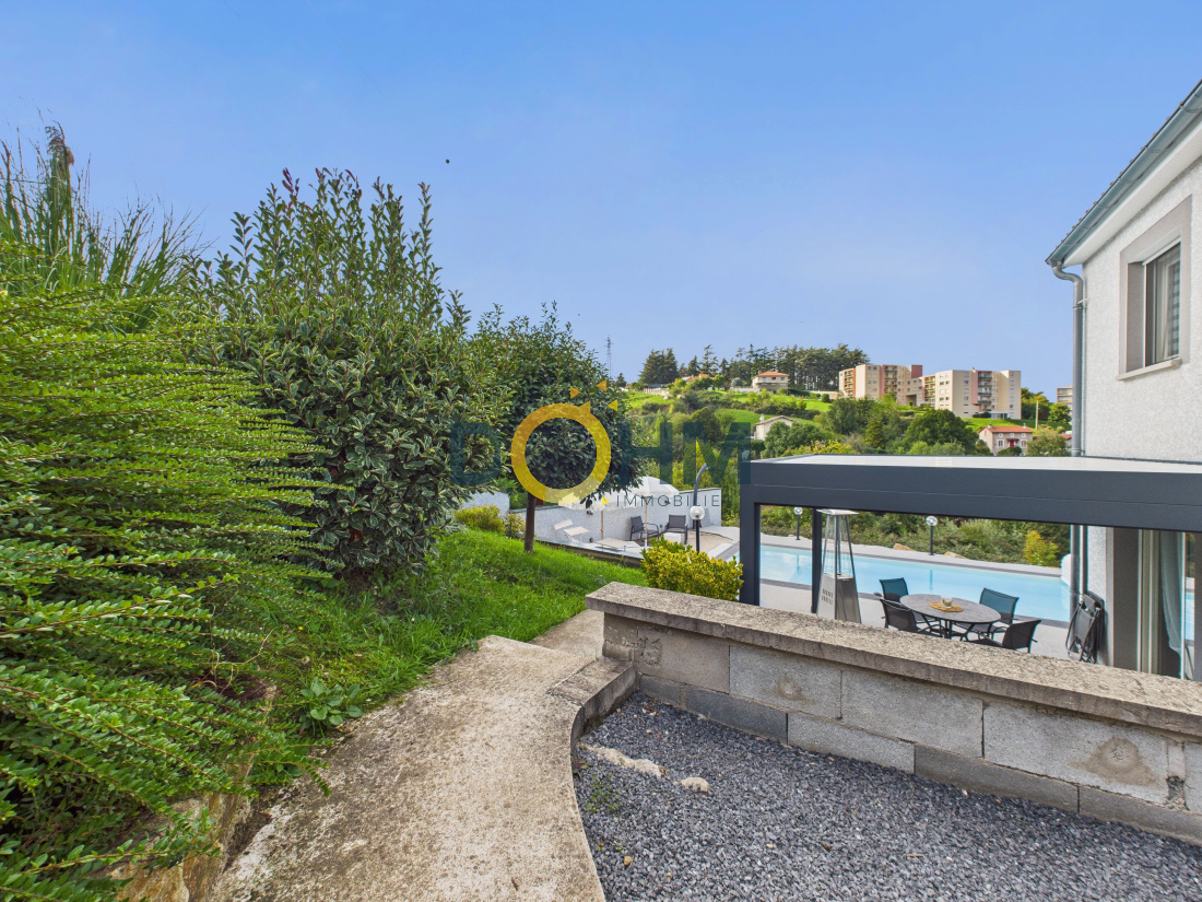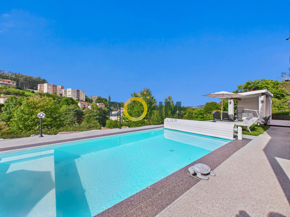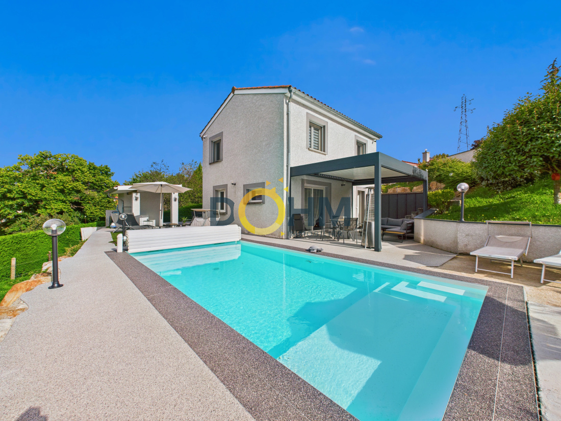 Nichée sur les hauteurs très recherchées de Firminy, cette splendide maison contemporaine de 115 m², construite en 2012, incarne parfaitement l’alliance entre élégance moderne et art de vivre. Dès les premiers instants, sa vue panoramique à couper le souffle et ses extérieurs impeccablement aménagés séduisent sans réserve. Conçue en duplex inversé avec une réflexion architecturale soignée, chaque espace a été pensé pour offrir confort, luminosité et harmonie. La vaste pièce de vie, baignée de lumière naturelle, s’ouvre sur une cuisine moderne entièrement équipée, tout en conservant un coin salon chaleureux et cocooning, idéal pour des moments de détente en famille. Elle donne directement sur une magnifique terrasse avec pergola bioclimatique, parfaite pour profiter pleinement des beaux jours tout en admirant le paysage. L’intérieur se compose de quatre chambres élégantes, d’un séjour spacieux et convivial, ainsi que d’une cuisine fonctionnelle pensée pour les amateurs de gastronomie. Le confort est assuré en toute saison grâce au chauffage au gaz et à la climatisation réversible présente dans chaque pièce. À l’extérieur, tout a été imaginé pour offrir une qualité de vie exceptionnelle : plusieurs terrasses aux ambiances raffinées, une superbe piscine au sel exposée plein sud pour des instants de détente inoubliables, des espaces verts paysagers et des stationnements intérieurs pratiques et sécurisés. Aucun travaux à prévoir : cette maison clé en main se distingue par sa modernité, sa situation privilégiée et la qualité irréprochable de ses prestations. Un bien rare sur le marché, à visiter sans tarder. Coup de cœur garanti ! Pour plus de renseignements veuillez contacter votre négociatrice Mme Kayabas Céline au O6.62.69.53.7O