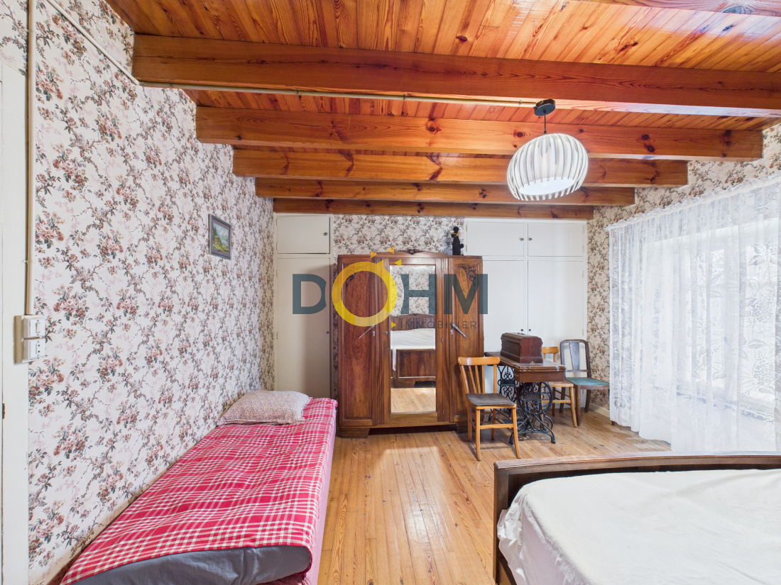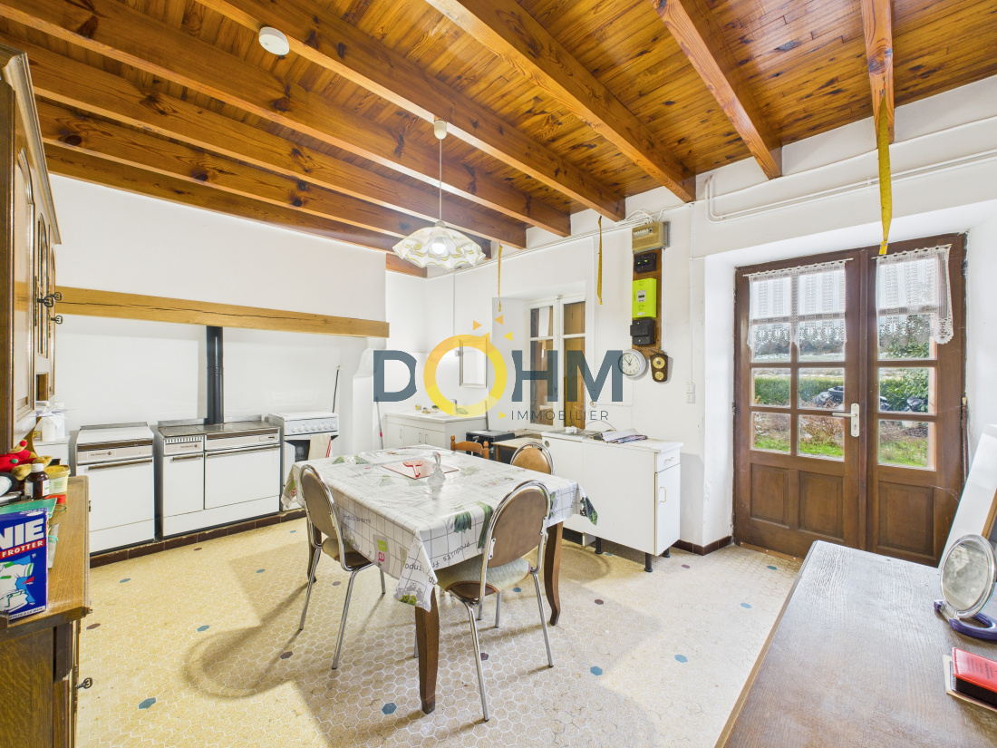 La partie habitable se compose, au rez-de-chaussée, d’une cuisine avec séjour, d’une arrière-cuisine, d’une salle d’eau et de WC. À l’étage, vous trouverez deux grandes chambres.