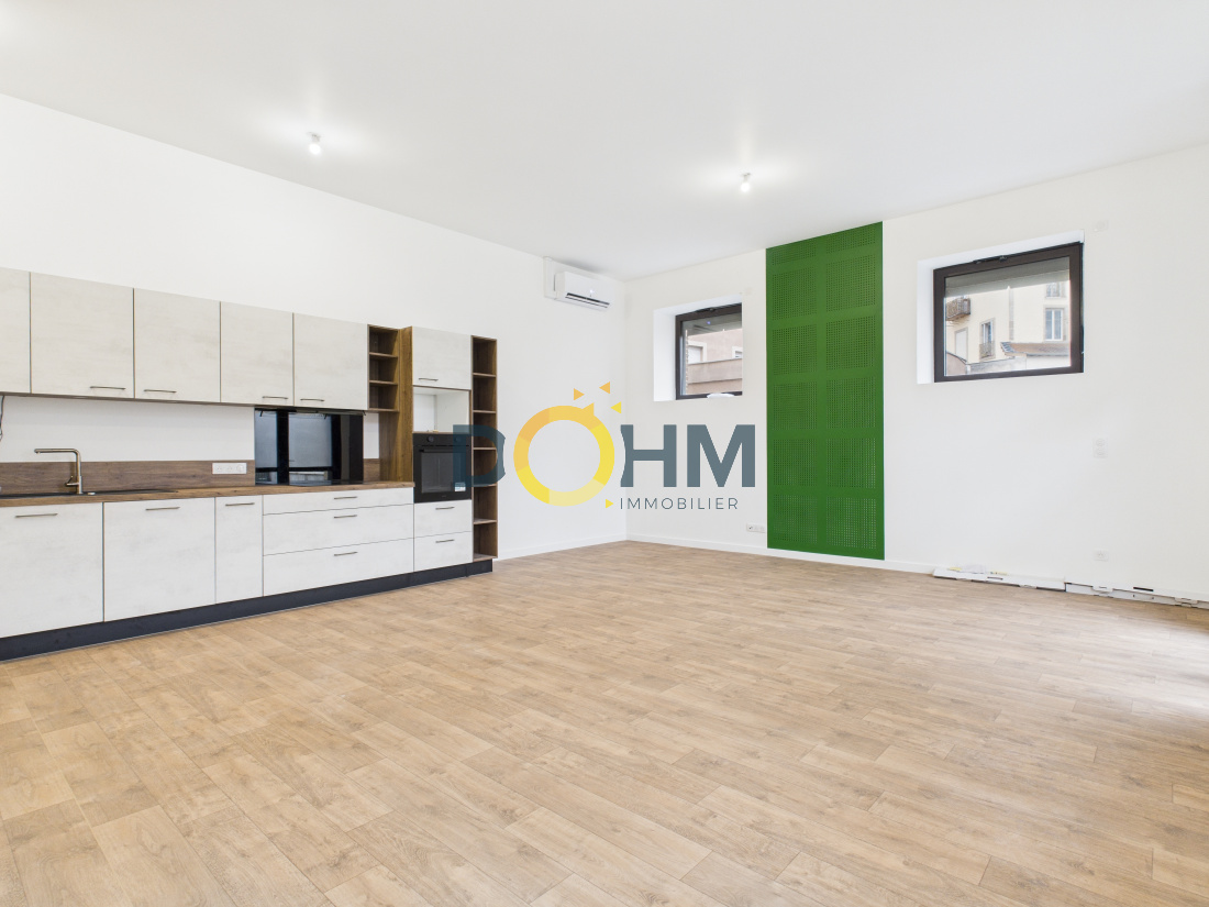 Exclusivité Dohm Immobilier ! À découvrir sans tarder, appartement 4 pièces de 99m² entièrement rénové, situé à proximité immédiate du centre-ville. Installé en rez-de-chaussée, l’appartement s’ouvre sur une spacieuse pièce de vie de 47 m² avec cuisine ouverte et équipée, idéale pour les moments de convivialité. La partie nuit se compose de deux grandes chambres dont une avec dressing et bureau et d’une salle d'eau moderne avec douche à l'italienne et WC. Une cave complète ce bien et offre un espace de stockage appréciable. Possibilité de local commercial. Une place de parking est disponible en location au sein de la copropriété, un réel avantage à proximité du centre-ville. Chauffage par pompe à chaleur air/air. Classement énergétique B. Pour plus d'informations, veuillez contacter votre agent commercial, Lola Guillaumin, au O6 73 31 44 58. Ce bien est soumis au régime de la copropriété montant moyen annuel de la quote-part de charges courantes annuelles de 1205 €.Copropriété composée de 44 lots dont 17 à usage d'habitation, aucune procédure en cours menée sur le fondement des articles 29-1 A et 29-1 de la loi no65-557 du 10 juillet 1965 et de l'article L.615-6 du CCH. SAS FF Immobilier conseils 33 boulevard Maréchal Fayolle 43000 Le Puy-en-Velay. Numéro de carte professionnelle CPI 4302 2021 000 000 001- CCI de la Haute Loire valable jusqu’au 11/04/2027 Les honoraires sont à la charge du vendeur.