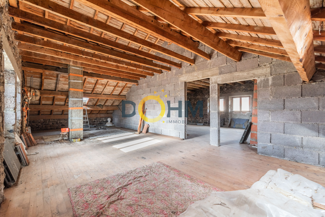 Située sur la commune de Vissac-Auteyrac, cette maison des années 60 offre de très beaux volumes, idéale pour un projet de rénovation, une activité artisanale ou un projet familial avec dépendances. Au rez-de-chaussée, vous disposerez d’un grand garage d’environ 100 m², d’un second garage de 40 m², ainsi que d’une chaufferie, d’une buanderie et de plusieurs pièces de stockage, offrant de nombreuses possibilités d’aménagement ou de rangement. Au premier étage, l’habitation se développe sur un seul niveau et comprend trois chambres, un bureau, une cuisine indépendante, un séjour lumineux, une salle d’eau et des espaces de rangement. Le séjour s’ouvre sur un balcon agréable. L’ensemble bénéficie d’une belle luminosité. Le grenier, spacieux, est entièrement aménageable, permettant d’envisager une surface habitable supplémentaire selon vos besoins. La toiture est en bon état, un atout important pour ce bien. Des travaux de rénovation sont à prévoir, notamment concernant l’isolation, l’électricité, le système de chauffage et les menuiseries, laissant libre cours à vos envies pour créer un intérieur à votre image. À l’extérieur, le terrain accueille un cabanon ainsi qu’un vaste atelier de menuiserie d’environ 230 m² (avec toiture en fibro-ciment) pouvant être vendu avec ou sans les machines, idéal pour un artisan, un investisseur ou un projet professionnel. Un pré attenant d’environ un demi-hectare complète l’ensemble, offrant un cadre verdoyant et de multiples usages possibles. Un bien rare par ses volumes, ses dépendances et son potentiel, dans un environnement calme. A découvrir sans tarder, avec Jérôme au o6 63 79 41 07