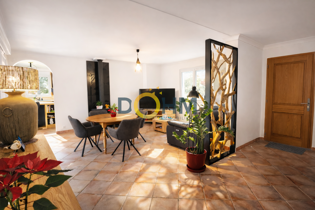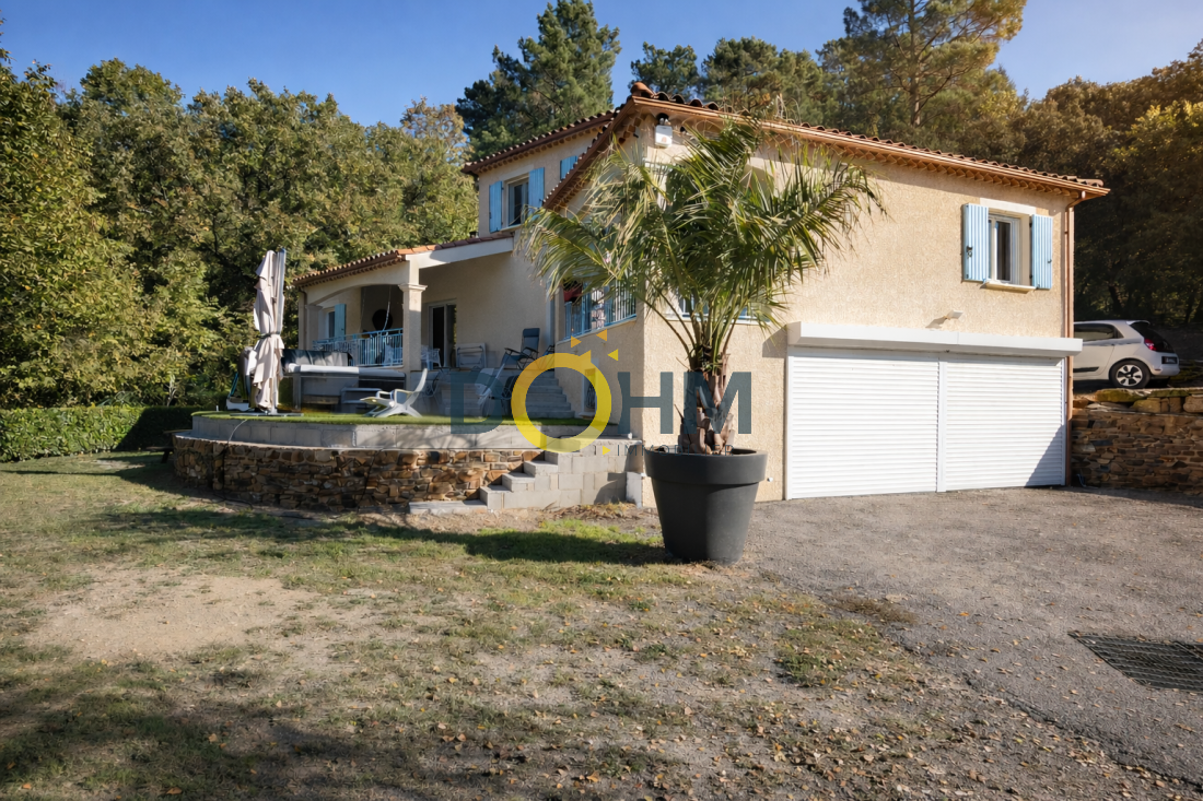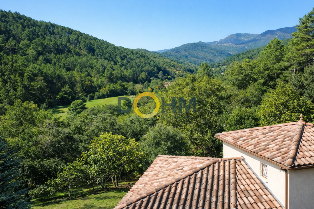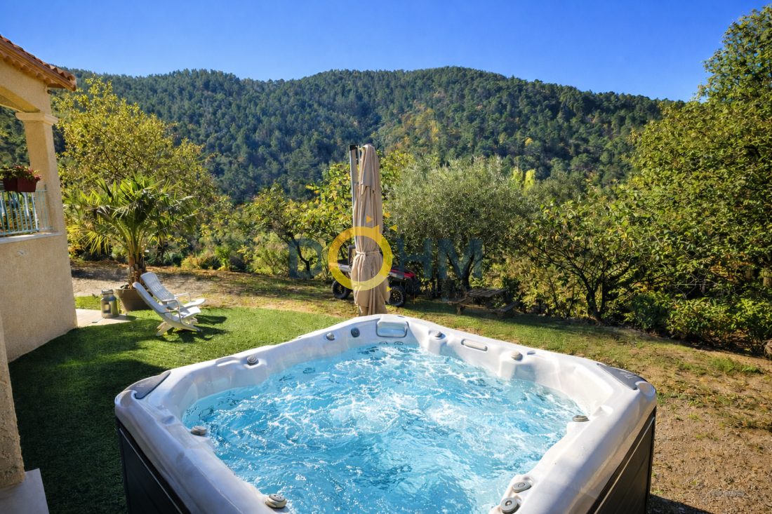 Dohm Immobilier Cévennes – Génolhac vous présente en exclusivité cette villa d’environ 130 m², implantée sur un terrain de 8 225 m², dans un environnement naturel préservé, au calme et avec vue dégagée sur les Cévennes. Les extérieurs offrent de belles terrasses lumineuses, idéales pour profiter du cadre, ainsi qu’un jacuzzi 7 places (octobre 2024). La propriété est entièrement sécurisée avec portail automatique avec digicode, alarme et 5 caméras (4 extérieures, 1 intérieure). En rez-de-chaussée, la maison s’ouvre sur une agréable pièce de vie, chaleureuse, équipée d’un poêle à bois. Elle se prolonge par une cuisine Schmidt entièrement équipée (juillet 2025), avec cellier attenant, offrant confort et fonctionnalité au quotidien. L’espace nuit se compose de deux chambres de plain-pied, ainsi que d’une salle de bain complète avec baignoire, douche et WC. À l’étage, une troisième chambre dispose de sa salle de bain privative. En sous-sol, un garage couvrant toute la surface de la maison (env. 110 m²) avec deux portes sectionnelles complète l’ensemble. Un bien rare à Sénéchas, alliant volumes, confort moderne et cadre naturel exceptionnel. Annonce rédigée par un agent immobilier immatriculé au RCS de Nîmes N° 978186062 M:stephan.seguret@dohm.fr T:O652717611