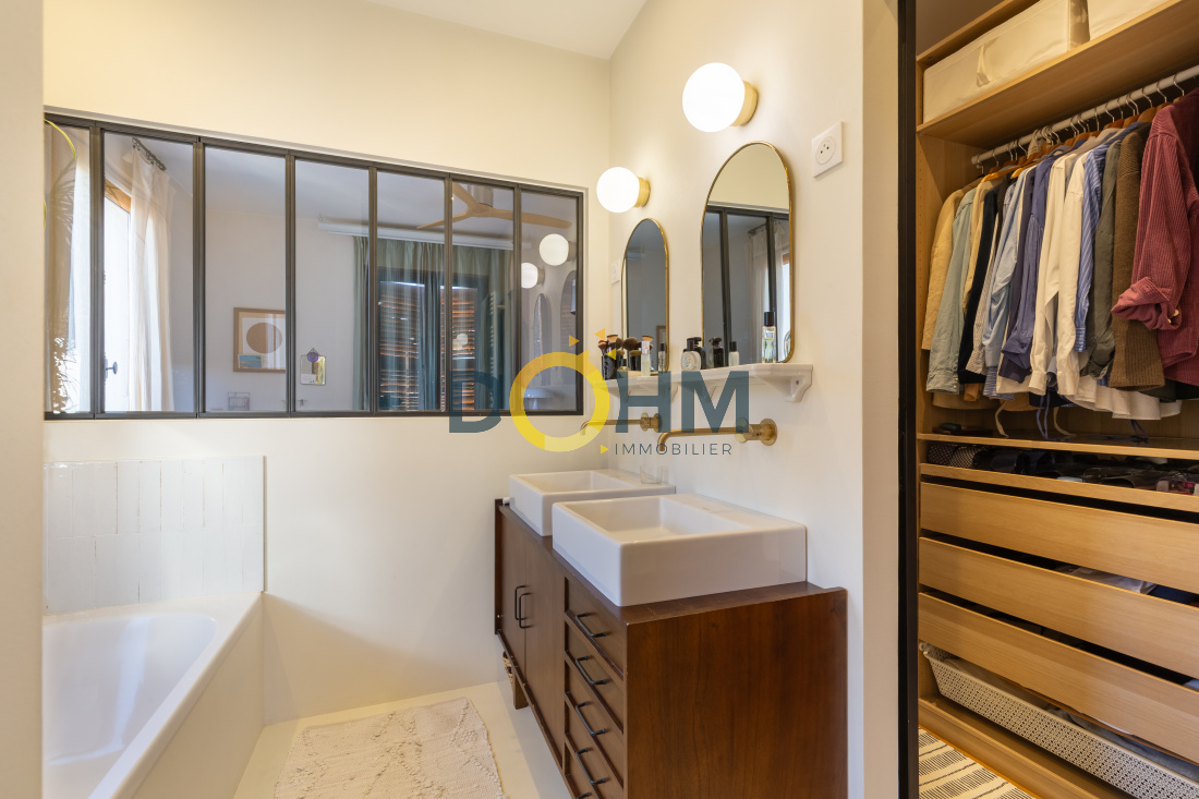 A 10 minutes de l'autoroute A43 Chimilin l'agence DOHM IMMOBILER vend dans un secteur calme et recherché, une très jolie maison dauphinoise rénovée alliant cachet, volumes et confort moderne. Toutes les commodités et écoles sont accessibles à pied. Implantée sur un terrain d’environ 1 000 m², la propriété dispose de belles prestations extérieures : piscine, cuisine d’été, dépendances, garages et cave. La maison offre environ 175 m² habitables et se compose : Au rez-de-chaussée : Belle cuisine équipée ouverte sur un séjour lumineux avec cheminée Buanderie / cellier WC Suite parentale avec douche et WC À l’étage : 3 chambres Salle d’eau WC Suite parentale avec dressing, salle de bain et WC Combles potentiel suplémentaire : 50 m² environ, isolés et chauffés, à finir d’aménager selon vos besoins (chambres, bureau, salle de jeux…) Maison idéale pour une famille, offrant beaucoup de potentiel dans un cadre de vie agréable. au prix de 489 000€ . Pour plus de renseignements et pour une visite contacter Marie de l'agenced DOHM IMMOBILIER au 06 27 73 02 04