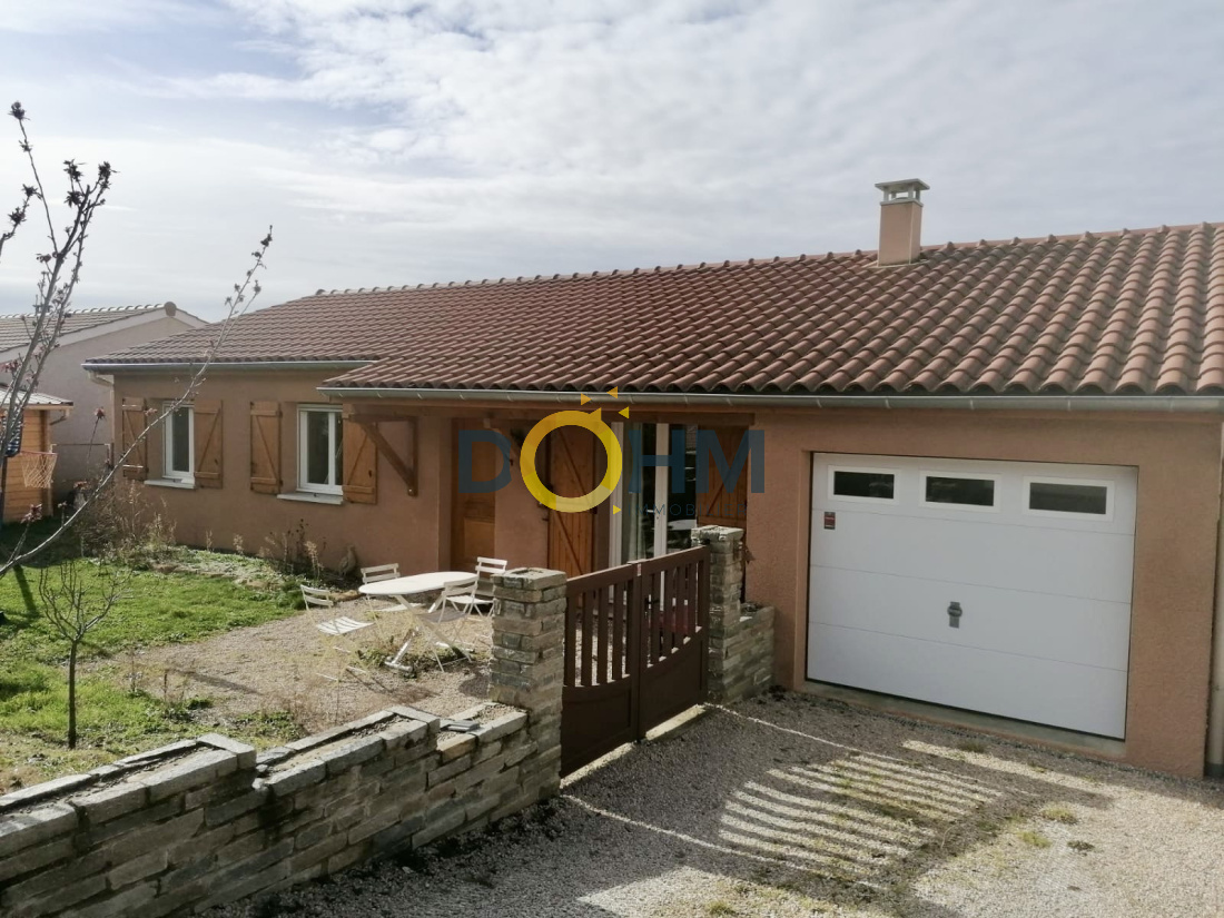 EXCLUSIVITÉ La Plume De L'Immo - SAINT-CYR-LES-VIGNES - Maison Plain-Pied de 2013, d'une superficie de 95 m2. Elle se compose d'une lumineuse pièce de vie avec cuisine ouverte (47 m2), trois chambres, salle de bains/douche et WC indépendants. Un cellier ainsi qu'un garage complètent ce bien. Chauffage par pompe à chaleur au sol (réversible). Possibilité d'installer un poêle. Le tout bâtit sur un terrain entièrement clos et arboré de 680 m2, avec une magnifique vur sur la Plaine Du Forez. DPE : B, GES : A. Montant estimé des dépenses annuelles d'énergie pour un usage standard : entre 630 euros et 910 euros par an. Prix moyens des énergies indexés sur l'année 2021. (Abonnement compris) Pour plus de renseignements, contacter Lucile BOUREILLE, Agent Immobilier, CPI n°4202 2022 000 000 008.
