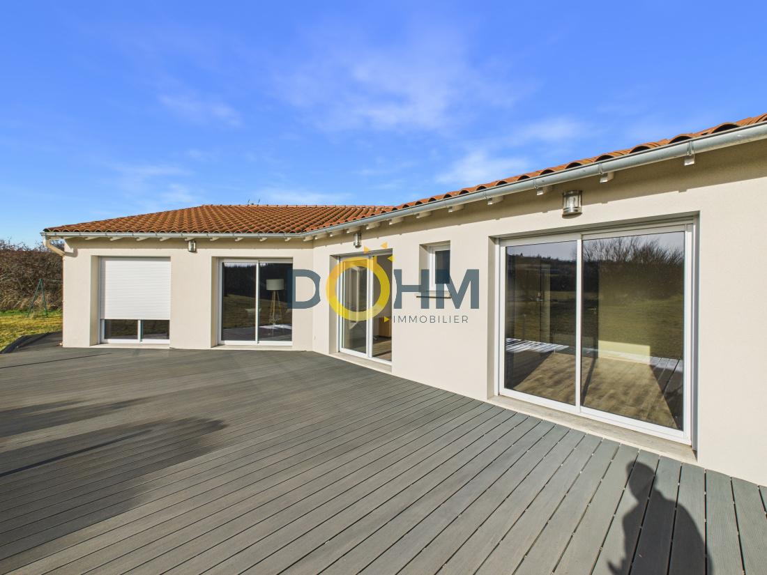 A vendre chez Dohm immobilier. Venez découvrir cette magnifique maison plain-pied de 180 m² construite en 2013. Elle se compose en première partie d'un magnifique salon / séjour / cuisine équipée de 80 m² avec beaucoup de luminosité. Le tout donnant sur une grande terrasse, idéal pour des moments en famille. La suite de la maison se compose de l'espace nuit avec 3 chambres dont une suite parentale avec dressing, une salle d'eau / bain, un bureau pouvant devenir une 4e chambre et un wc indépendant. Vous trouverez ensuite une buanderie et un grand garage. Chauffage pompe à chaleur au sol. Pour plus de renseignements veuillez contacter Colin FENOGLIO O7 89 50 31 91 SAS FF Immobilier conseils 33 boulevard Maréchal Fayolle 43000 Le Puy-en-Velay Gérant. Numéro de carte professionnelle CPI 4302 2021 000 000 001- CCI de la Haute Loire valable jusqu’au 11/04/2027