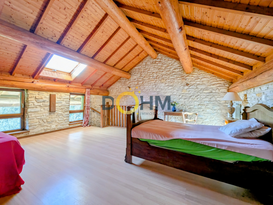 L'agence Dohm Immobilier vous propose à l'achat en exclusivité ! Cette magnifique propriété en pierres de 345 m² édifiée sur un terrain de 3565 m², situé sur la commune de Courtenay à 15 mns de Morestel et 25 mns de Bourgoin-Jallieu. Ce bien atypique est doté de deux habitations dont une sur 2 niveaux composée d'une belle pièce de vie avec une grande cuisine, une grande salle d'eau et un wc complète le rez de chaussée. Au premier, une belle chambre et une très grande pièce à terminer, une salle d'eau et un wc. Au deuxième, une magnifique chambre mansardée termine la visite de la première habitation. La deuxième habitation, commence par une grande pièce faisant office de garage et d'une chaufferie, une pièce de vie, une salle d'eau et un wc complète le rez de chaussée. A l'étage, un palier desservant une grande salle d'eau et un wc, une grande chambre, une belle mezzanine et une très grande chambre à terminer. La particularité de cette propriété, elle peux convenir à une ou à deux familles. Votre contact Agnès Morel Agent Commercial EI (529365728 vienne) tél : O621836255