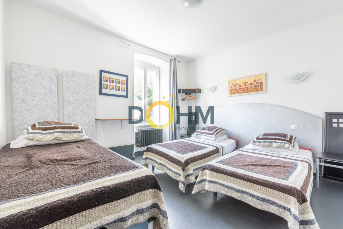 Ensemble immobilier en centre ville de Langeac, proche des commodités et à deux pas de la gare. Opportunité à saisir, murs d'un hotel et restaurant ainsi qu'un appartement privé. La propriété est composé d'un hotel doté de 7 chambres avec salle d'eau et WC, une terrasse, un salon, une lingerie. Le restaurant bénéficie de beaux volumes et d'une terrasse extérieure sans vis-à-vis, une cuisine à équiper, des sanitaires impeccables. A l'étage, un appartement d'appoint avec un petit séjour, cuisine ouverte. Au-dessus, une salle d'eau, une chambre et un dressing ainsi que 3 pièces mansardées. Toutes les menuiseries sont en double vitrage, le chauffage est central au fioul avec une cuve de 3000L. Contact Romane au 0642467868