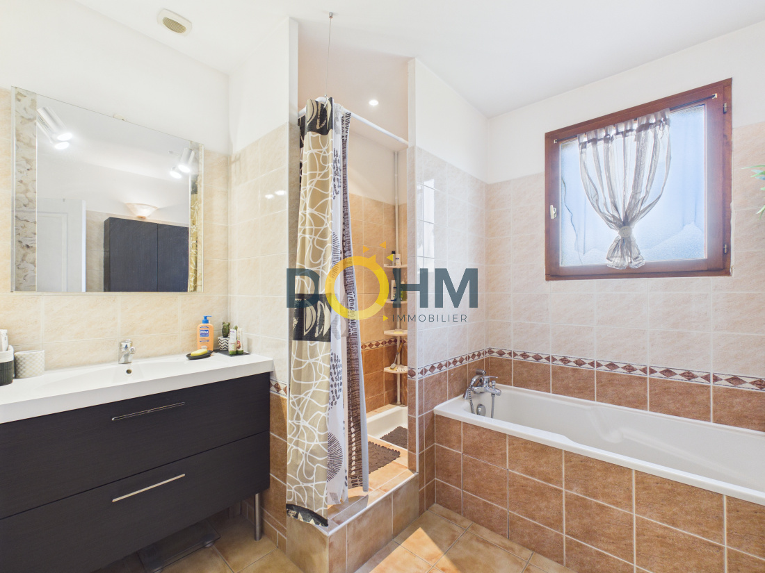 Au rez-de-chaussée, vous découvrirez une entrée avec placards, une cuisine équipée et aménagée ouverte sur un spacieux salon-séjour lumineux, avec accès direct à une terrasse couverte idéale pour profiter des beaux jours.